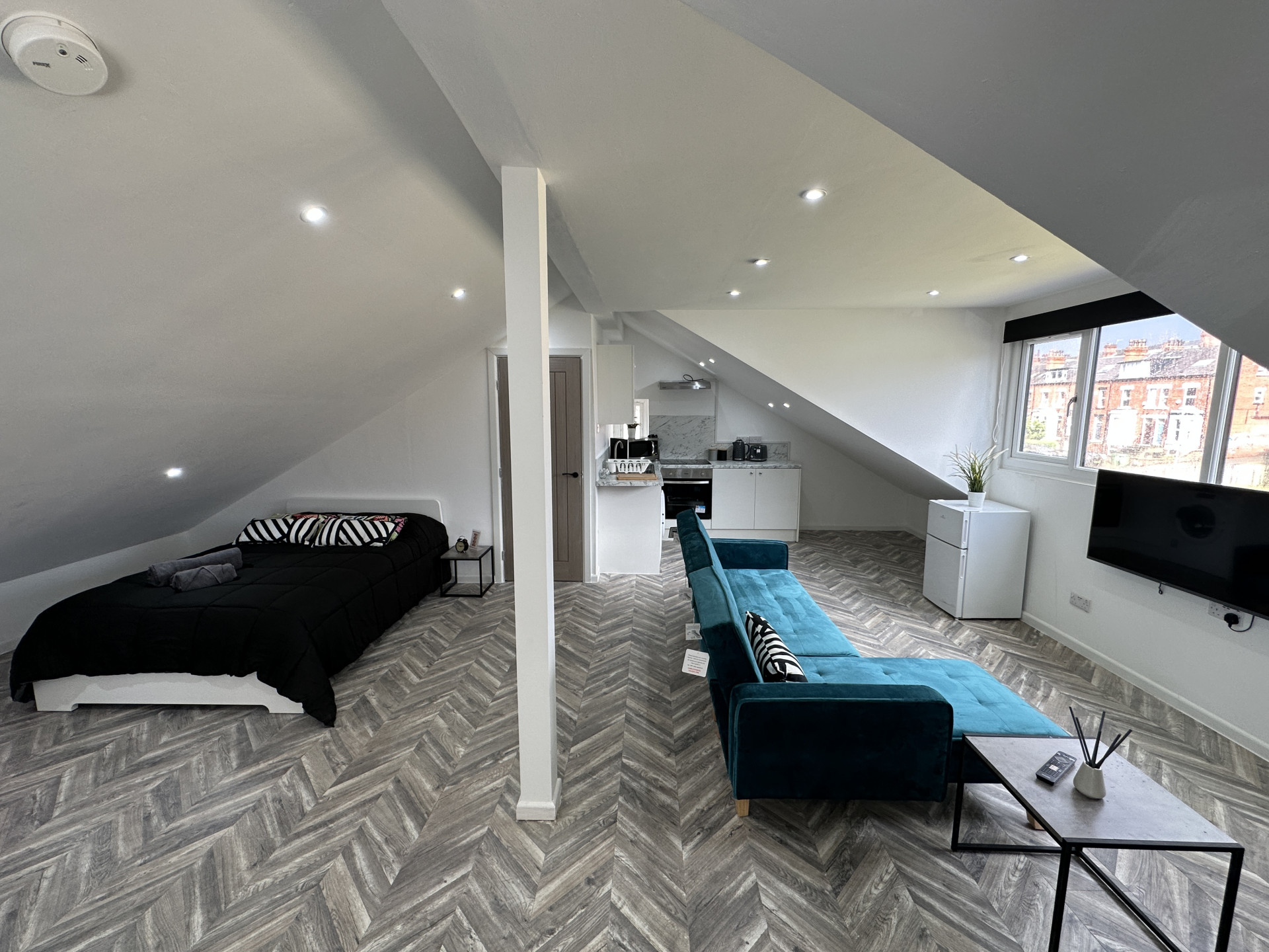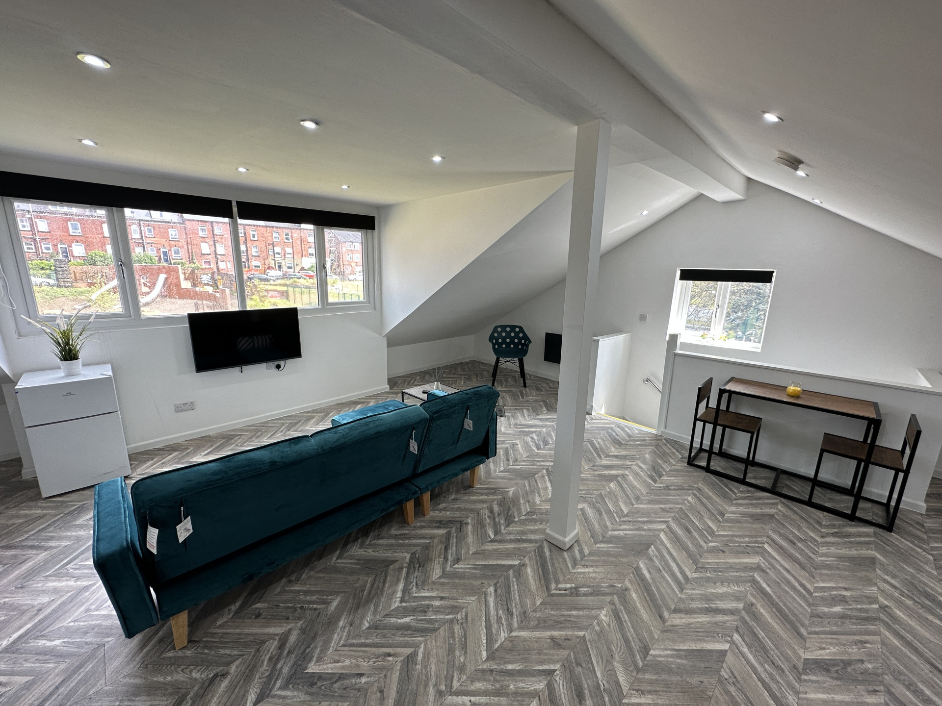 Modern lounge / dining area that comes with a wall mounted smart TV, so you can sit back and relax with your favourite meal.