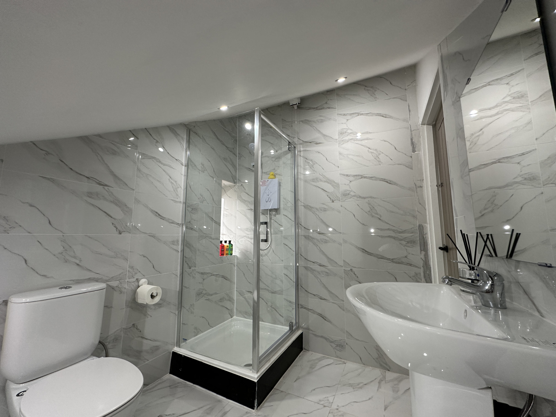 2 large fully tiled modern bathrooms that come with a beautiful walk in shower.