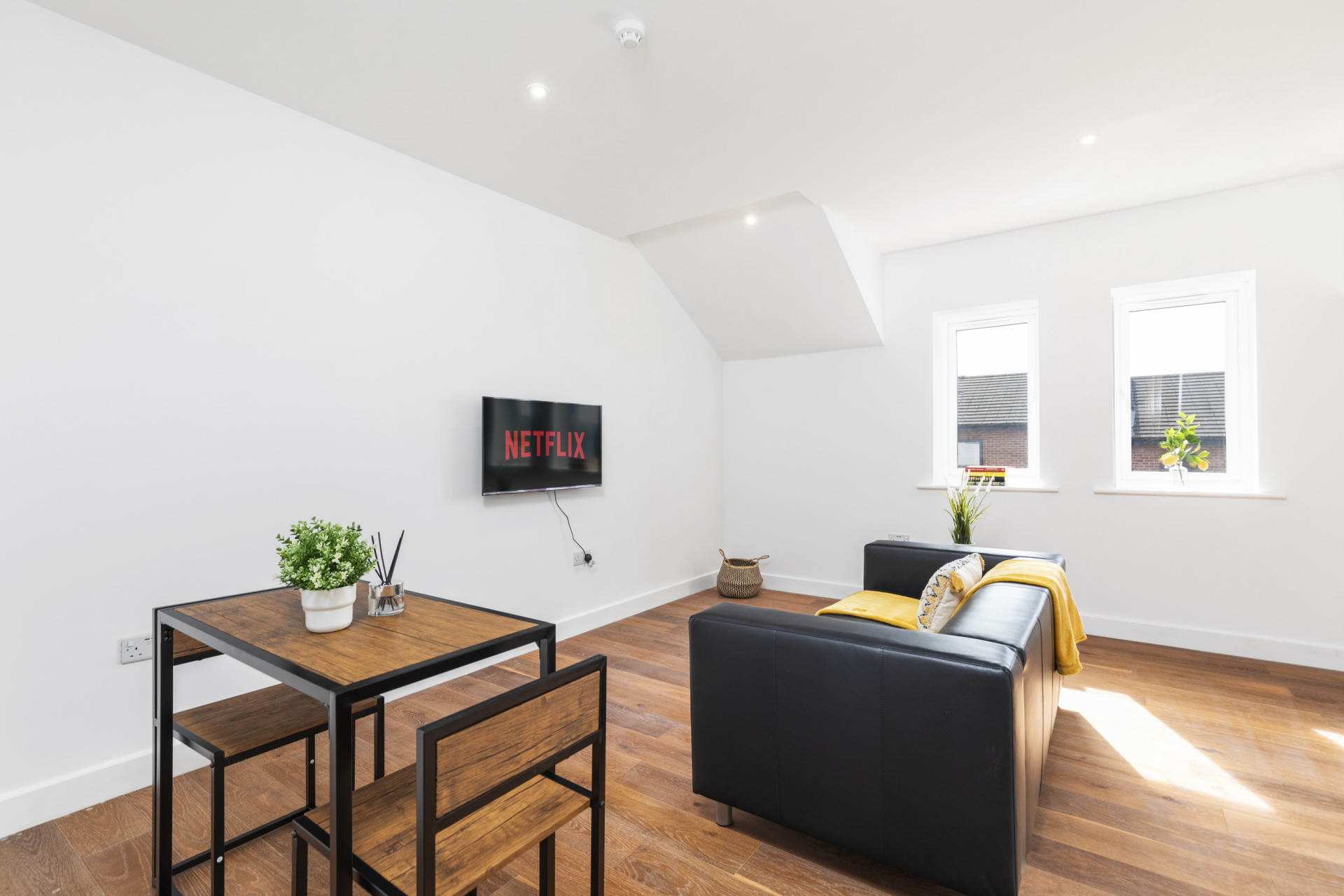 Modern lounge / dining area that comes with a wall mounted smart TV, so you can sit back and relax with your favourite meal.